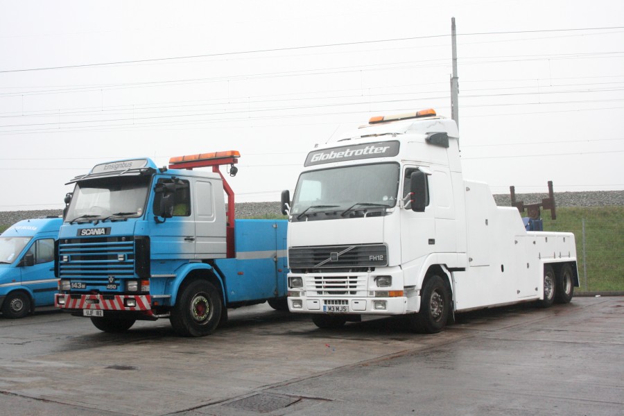 | Details: Ensignbus acquired Volvo FH12 recovery truck M3MJS in March 2011. It is intended to replace Scania UJF182, whose registration and smart appearance disguise the fact of it being over 20 years old. The newer Volvo will no doubt be repainted (and perhaps re-registered) before use but it was photographed in 'as received' condition, at Purfleet Garage on 16th March 2011. | |||||