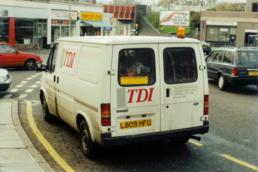 | Details: LTA (London Transport Advertising) was sold to TDI Ltd in 1994, although the operation continued to use the existing fleet of CDS-leased vehicles. Ford Transit van 4341F was photographed at Queensbury Circle, showing its new livery. The cab door lettering states that the van is working on behalf of London Transport Buses, while that on the back shows that the Jamestown Road offices were still in use. New in October 1993, 4341F completed a standard three-year life. | |||