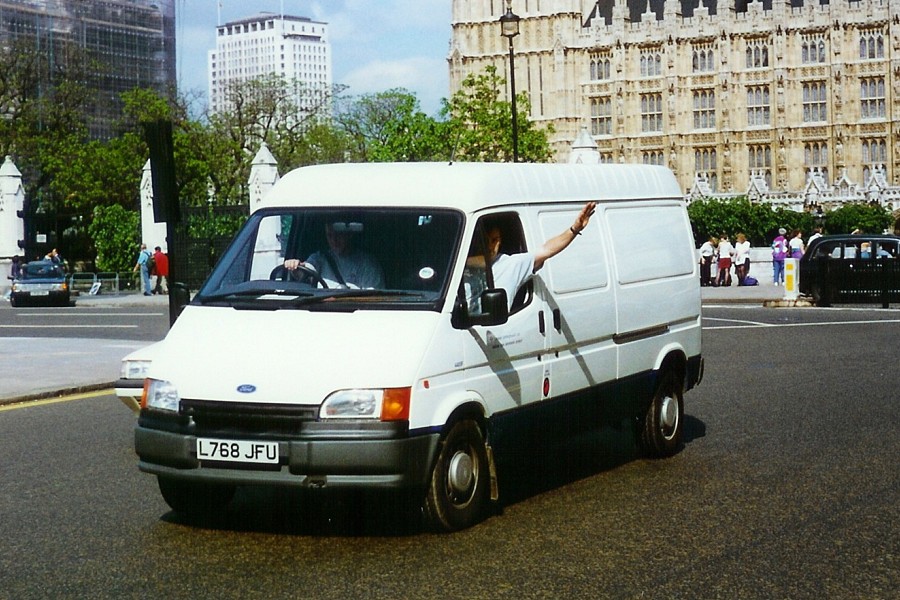 | Details: Long-wheelbase Mk4 Ford Transit van 4400F was new in May 1994 and was assigned to the Jubilee Line extension project. Note that it lacked the bodyside brandings. Photographed at Parliament Square on 7th June 1994. | |||