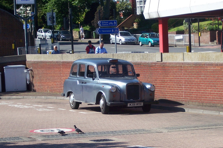 | Details: Dartford Garage eats Taxis! Standing out somewhat from the numerous black FX4 taxis to have operated for Arriva Kent Thameside in recent months, M391MYH wears a slightly curious silver livery. In certain light it can appear almost black. Given fleetnumber CF20 but not carrying any visible lettering, it was photographed at Eltham Bus Station on 29th June 2011. | ||||