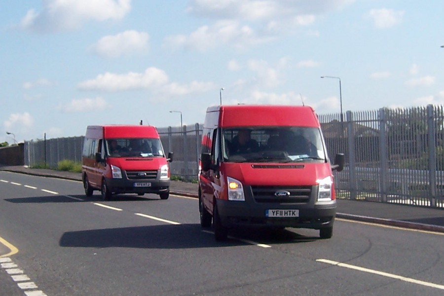 | Details: Two of the photographs published today show a pair of Ford Transits being delivered (here is the other one). Coming over the bridge and about to turn towards West Ham garage on 30th June 2011 these two minibuses had only been licensed that day. They soon entered service as crew ferry vehicles for Stagecoach London, but have yet to gain any markings. | |||