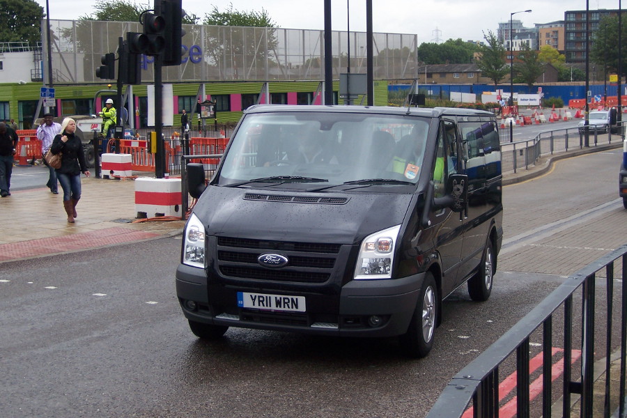 | Details: An odd man out among recent deliveries to Stagecoach London is this black Ford Tourneo minibus. Observations suggest it is used as crew ferry from West Ham garage. It was photographed at Canning Town Bus Station on 22nd June 2011. Just visible on the right (and reflected in the bodywork) is Tube Lines MAN demountable truck 2587. | |||