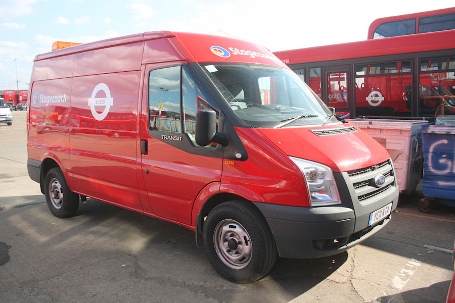| Details: Stagecoach 95256 (YC11KTA) is a new Ford Transit van assigned to the rather remote Rainham garage. It was photographed at home on a sunny 9th August 2011. Although the previous van assigned to Rainham was a white Ford Transit (95083 RJ05FHG), the one visible in the background is actually Ensign EX02YCC paying a visit! | ||||