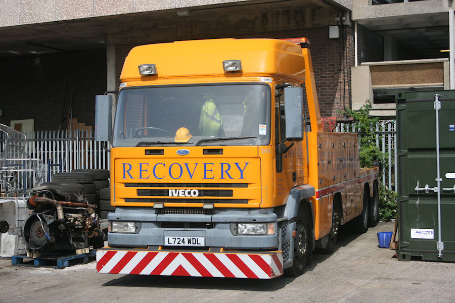 | Details: Back to Poole again, this smart Iveco recovery truck was photographed in the Wilts and Dorset garage on 22nd August 2011. It was lettered for SV Commercials but the legal lettering (and the DL registration) show this to be Southern Vectis, the Isle of Wight bus operator. Both companies (plus several others in the area) are owned by the Go-Ahead group and there seems to be some interchange of vehicles. Indeed a Ford Transit van was also photographed here that had lettering on the front for Wilts and Dorset and on the back for Marchwood Motorways and Bluestar. | ||