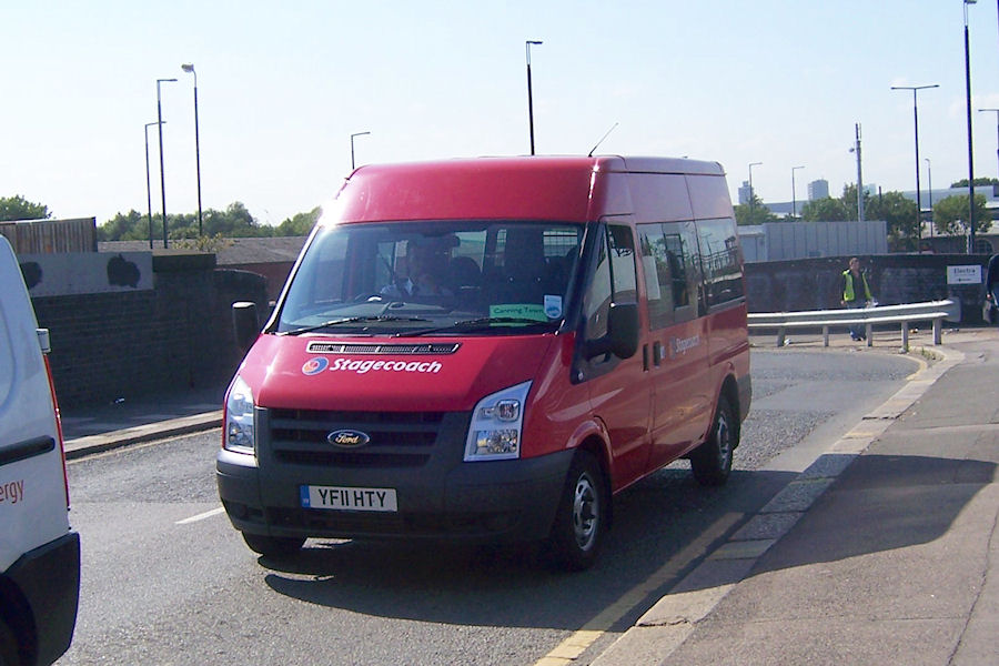 | Details: Crossing the railway line at West Ham on 1st September 2011, YF11HTY is based at nearby WH garage, and is the first of the batch to gain Stagecoach logos and a fleetnumber (96201). As the windscreen board shows, it was heading for Canning Town. | |||