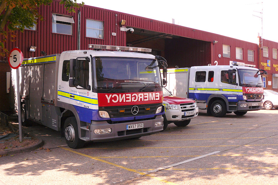 | Details: With the closure of Tottenham and the move of the Vauxhall depot to Battersea, Camden is now the only Emergency Response Unit base that is easily visible from public areas. Present on 3rd September 2011 were the usual pair of Mercedes-Benz Atego rescue tenders (long-cab 2592 and short-cab 2595, both with Camden allocation stickers), plus the unit's car, Ford Ranger 6786F. | ||||||