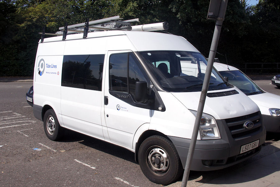| Details: There are currently nine of these all-white Ford Transit crew vans in use with Tube Lines, although 6260F is the only one not to display its fleetnumber. The number is odd (as in 'unusual', not as in 'not even') as the other three LS07xxx registered examples are in the block 6338F to 6340F. Based at times at Borough Union Street and Stratford Market Depot, it was photographed parked at Oakwood Station (alongside Vauxhall Combo van 6663V) on 24th July 2011. Being almost four and a half years old, replacement must be expected soon. Note that the photographer did try to move the sign in front, in order to get a better shot, but he only managed to bend it! | |||