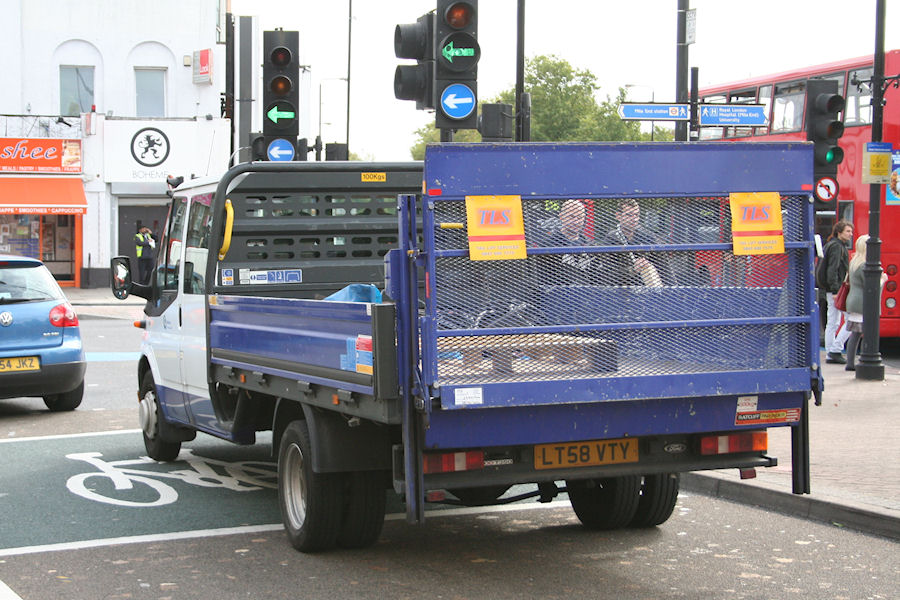 | Details: Very rarely seen out and about (at least not in daylight), Ford Transit dropside truck 6530F was photographed at Mile End on 22nd September 2011. Assigned to Tube Lines and based at Stratford Market, like most recent dropside trucks it has a mesh-floored tail-lift. I'm still not sure exactly what the flaps on the underside are for though. | |||