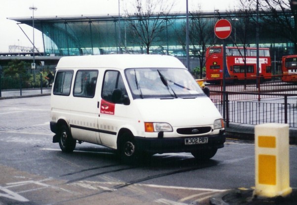 | Details: East Thames Buses is a subsidiary of London Buses Ltd, with a complex history leading to its unique position. Suffice to say that a number of white-liveried support vehicles are operated, including this Ford Transit crew-van W302PBY seen at Stratford Bus Station on 13th December 2001. | ||||
