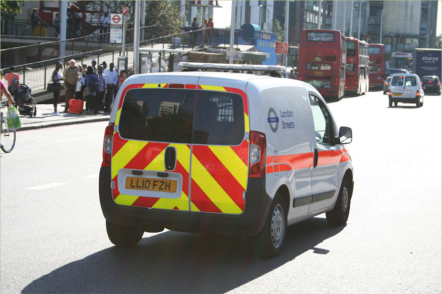 | Details: I have received literally no requests to show the back end of a Peugeot Bipper van, so here it is! One of five operated by TfL Streets, 6981P was photographed passing through Elephant and Castle on 30th September 2011. Note the LED light-bar and asymmetric rear door. | |||