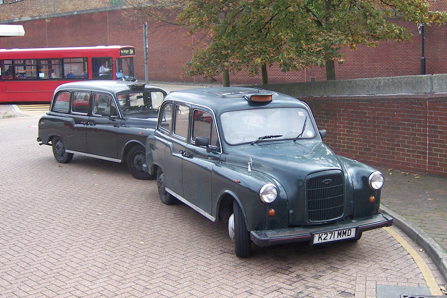 | Details: Eltham Bus Station on 27th September 2011 with a couple of taxis waiting for custom. No, wait a minute, these are service vehicles! Arriva Kent Thameside has acquired at least a dozen second-hand Carbodies FX4 taxis in recent months. They are used as crew ferries from Dartford Garage but are unlikely to all have been in service at the same time. The first few gained Arriva logos and fleetnames but most are anonymous. The pair here are CF21 K271MMD (which is actually very dark green) and CF19 N676CMG. | |||||