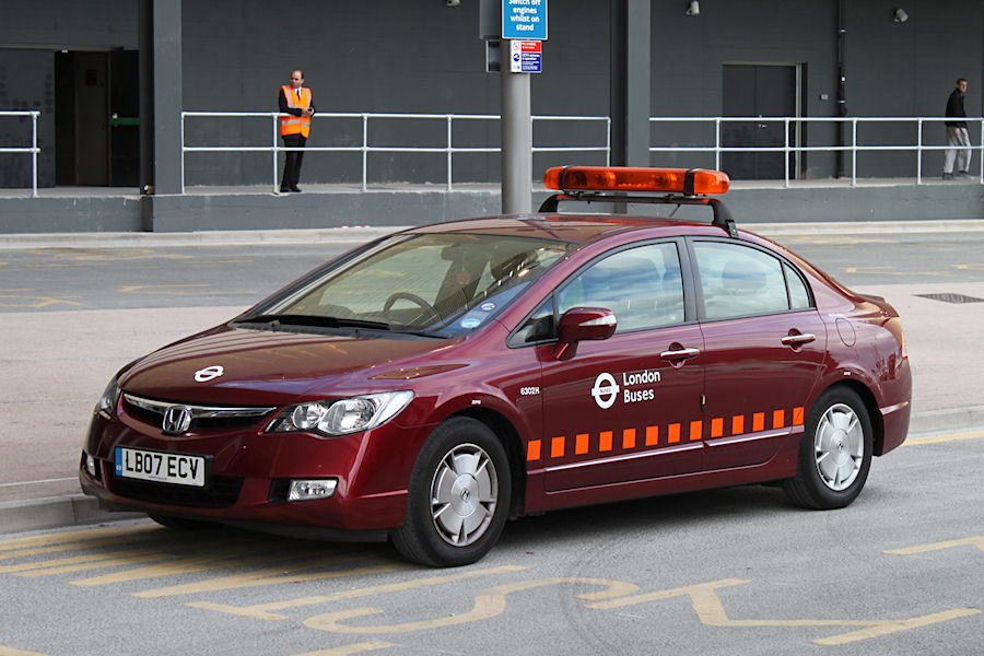 | Details: Judging by reports, Honda Civic saloon 6302H has spent the last four years in Stratford, apart from an outing to Turnpike Lane! It was sometimes to be found in the bus station, but more often than not it was hidden away in the 'Office Village' on the other side of the Broadway. From September 2011 a second bus station opened in Stratford, north of the railways lines in the new Westfield development. Referred to as Stratford City, it was opened to the public on the 13th, and was also visited on that day by 6302H. | ||||