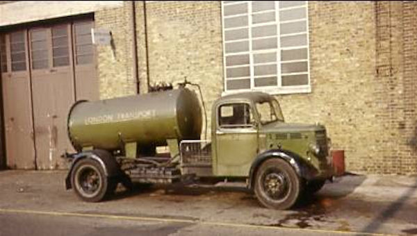 | Details: Bedford OLBD 826B was almost at the end of its second career when photographed at Chiswick Works on 4th November 1966. New in 1949 it originally had a dropside body and was shown on official lists as being a towing lorry. However, as Clive's recent article suggests, this probably referred to the fitting of a tow bar for trailers, rather than a capability to tow buses. In 1953 826B was rebuilt, being fitted with a 600-gallon tank removed from Albion lorry 376A. In this form it was used to transport distilled water used for vehicle batteries. It was replaced by Ford D-series 1390F in early 1967 and was sold in April. | ||||