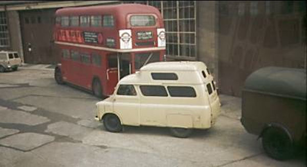 | Details: This view taken inside Chiswick Works on 24th April 1967 shows three service vehicles. The main subject is Bedford CAV Ambulance 976B, then over 13 years old. It was to last another two years before replacement by CALV model 1532B. On the right is Bedford-Lacre sweeper BL2, while on the far left is a small grey or cream van. I'm not certain but this could be one of the four Beford HAV vans delivered between 1964 and April 1967 (1373B, 1382B, 1383B and 1405B). Also visible, reflected in the windows of the bus from which the photograph was taken, is what appears to be a GS-class bus in white livery. This was probably a St.Johns Ambulance vehicle. | ||||
