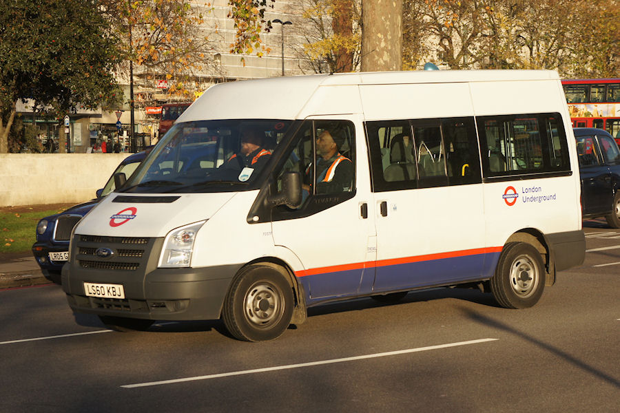 | Details: Catching some winter sunshine as it rounds Marble Arch on 2nd December 2011, Ford Transit minibus 7037F has a small claim to fame. It was, by a couple of months, the first 7xxx numbered service vehicle to enter service. Operated by London Underground, it is normally kept at Edgware Road Station. | |||