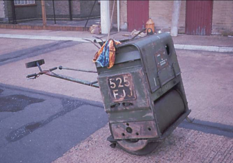 | Details: This must be the strangest 'service vehicle' I have shown on this site to date! Quite clearly a hand-operated road-roller, it was nevertheless road-licensed. Built by Stothert and Pitt and new in 1963, it was registered as 525FJJ. A similar vehicle acquired 2 years previously became 219CXK. Information on vehicles like this would not have been published at the time, so it is fortunate that photographers such as John Marshall took note of them. The registration number may have been a clue, London Transport having used several 5xxFJJ marks on service vehicles (like 1292R) and also on the TT class buses used as bicycle transporters at the Dartford Tunnel. The disposal dates for these machines are not known, although 219CXK was seen still in use in November 1980. They may have lasted longer, as both were apparently last licensed on 30th April 1991. The photograph was taken at Waterloo (Cornwall Road?) on 14th May 1969. | |||