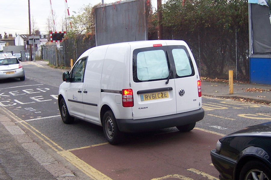| Details: RV61CZE is one of (at least) four Volkswagen Caddy vans delivered in late 2011. Although in the same registration series as those leased for London Underground (such as 7151VW), these four are plain white and carry removable Tube Lines labels rather than having permanent lettering. Reports suggest that they are being used as internal mail vans from Acton Works, and they appear to have replaced the four plain white Ford Transit Connect vans used for this role since 2010 (such as CP10JXZ). The reason for this, and whether or not they are allocated fleetnumbers, remains unknown for now. On 28th November 2011, RV61CZE was caught leaving Acton Works. Note the papered over rear windows. | |||
