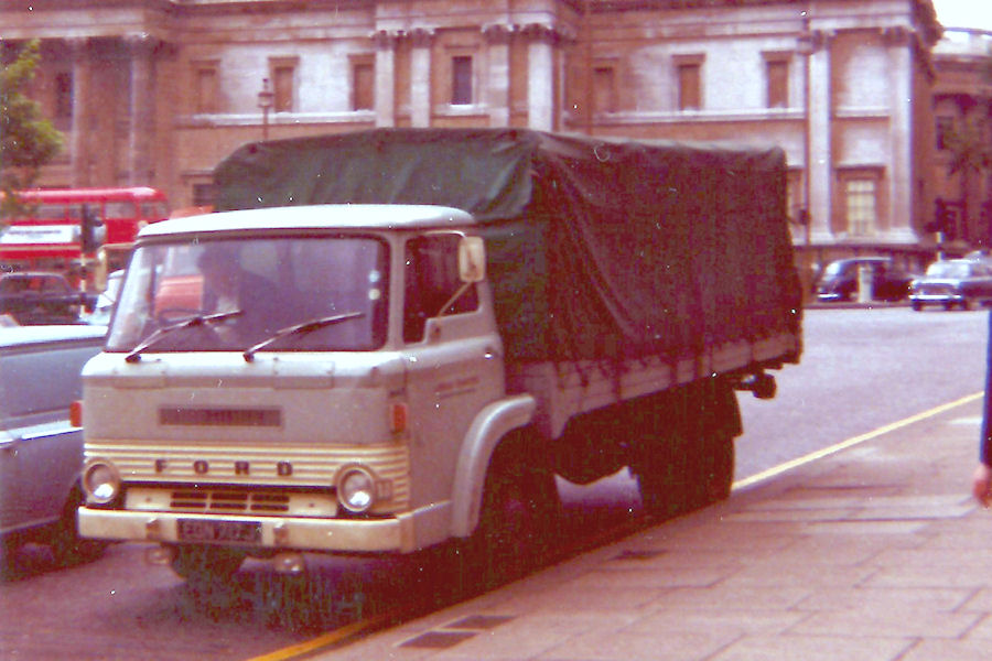 | Details: Fairly typical of LT lorries of the early 1970s, 1641F was a Ford D550 lorry, slightly unusual for having a full-length tilt cover. The body featured the normal arrangement of fixed forward sides and dropsides on the rearmost half. Based at Chiswick Works, it was photographed parked at Trafalgar Square on 1st July 1972. | |||