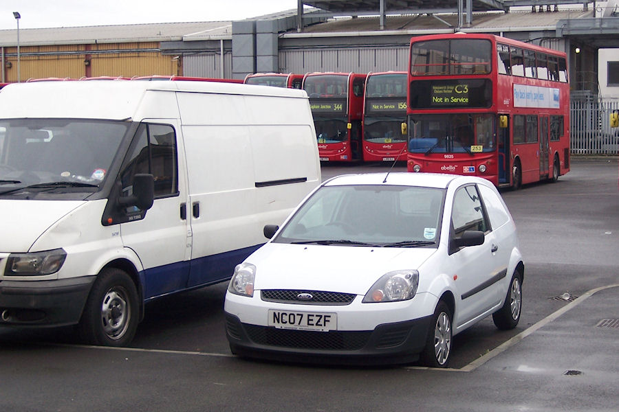 | Details: Abellio continues to refresh its service vehicle fleet with newer second-hand vehicles, one of the latest being Ford Fiesta van NC07EZF. Acquired in late 2011, it was photographed at Battersea Garage on the last day of that year. DVLA records show it as being blue, so it has presumably had a respray although unusually it had yet to gain Abellio lettering. The vehicle on the left is interesting. Abellio service vehicles started gaining new fleetnumbers in late 2011, and this van carries number 6216 on its fuel filler cover. However, it also still carries the 5479F number (and blue skirt livery) from its time as a central fleet vehicle. Since last being shown, the Ford Transit van has lost its Travel London lettering, as had most of the fleet. However, it has also had its light-bar and spot-lights removed, perhaps suggesting withdrawal or a change of role. | ||||||