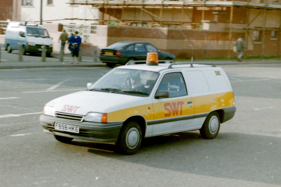 | Details: Now synonymous with South West Trains, in the 1980s and 1990s SWT was used as a fleetname by South Wales Transport, a former National Bus Company subsidiary with operations centred on Swansea. Photographed in that city in about 1996 was their F898HKE, a Vauxhall Astra van. Apart from the livery and the oversized roof beacon, the vehicle is very similar to those operated by LT (such as 3674B). | ||
