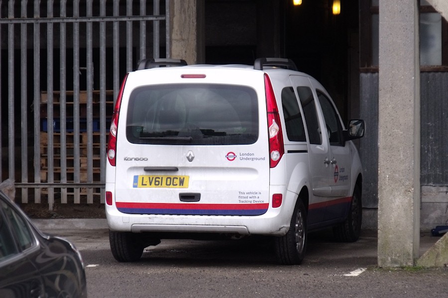 | Details: Hiding its face (!) at Rayners Lane Station on 28th January 2012 was Renault Kangoo 7165R. Apart from a slightly lower-mounted registration plate, this car is identical to Baker Street's 7132R, although its allocation is not yet known. | ||||