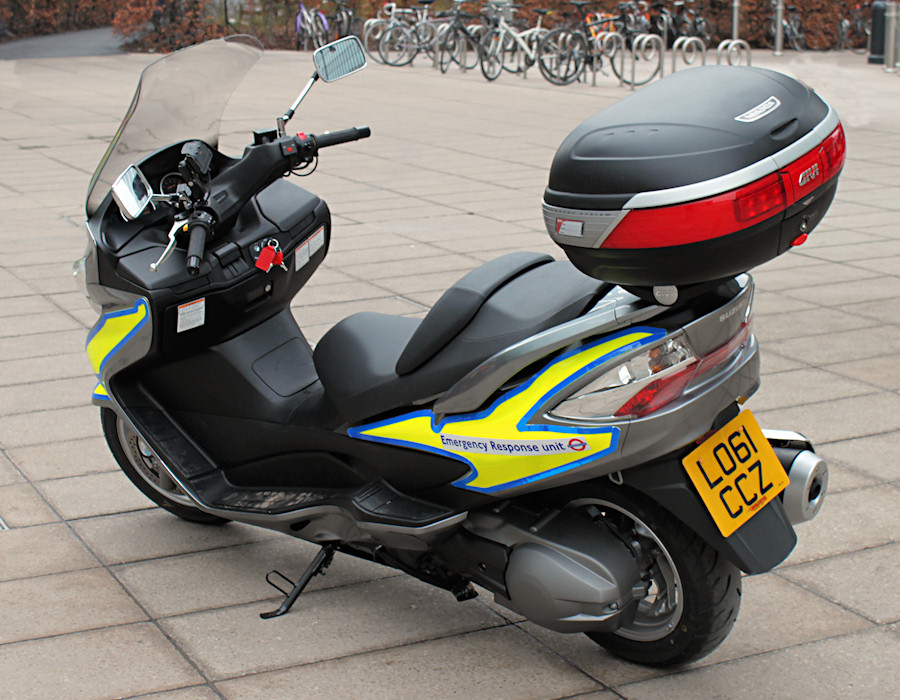 | Details: Another view of Emergency Response Unit Suzuki AN400 motorcycle LO61CCZ at Canary Wharf on 9th February 2012. | |||