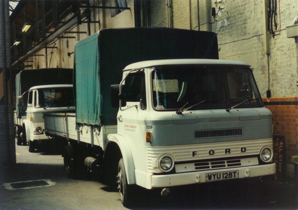 | Details: Parked in Wood Green bus garage on 20th July 1985, 2128F (WYU128T) and 2130F (WYU130T) are Ford D0607, 3 1/2 ton, 1/2-tilt dropside lorries new in 1978. Part of a batch of four, they spent all of their 10 years lives allocated to a variety of bus garages. | |||||