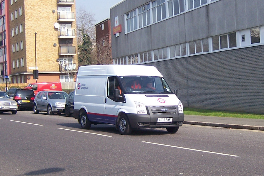| Details: Photographed coming down Bollo Lane towards Acton Works on a sunny 23rd March 2012, this Ford Transit van is very slightly unusual. Numbered 7320F and delivered less than a fortnight earlier, the position of the gutter rail shows that this is a short wheelbase mid-height Ford Transit. Only two other vans of this configuration are known to have featured in the numbered fleet in recent years (5916F and 6437F). This picture also shows a recent change to the Ford Transit design, whereby the mesh behind the radiator grille is finished in silver instead of black, making it much more visible. | |||