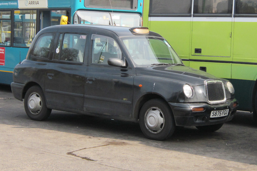 | Details: The small fleetnumber (CF77) on the offside is the only clue to this being a service vehicle. Photographed at Hemel Hempstead Bus Station on 22nd March 2012, S875FGU is a LTI TX1 taxi, acquired by Arriva the Shires around the beginning of the year. Only the second TX1 reported as a service vehicle, it is of course used as a crew ferry. | |||