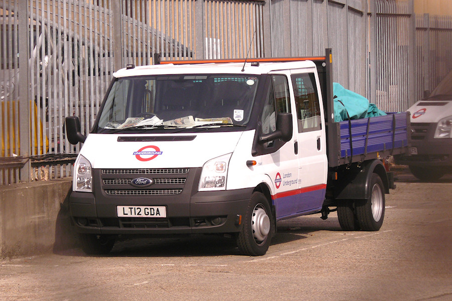 | Details: Lillie Bridge Depot received a large quantity of new vehicles in the latter half of 2011, including nine Ford Transit dropside trucks numbered 7104F to 7112F. More of the type were delivered in spring 2012, including 7245F photographed at the depot on 6th April. The change to silver radiator mesh is apparent in this view. | ||||