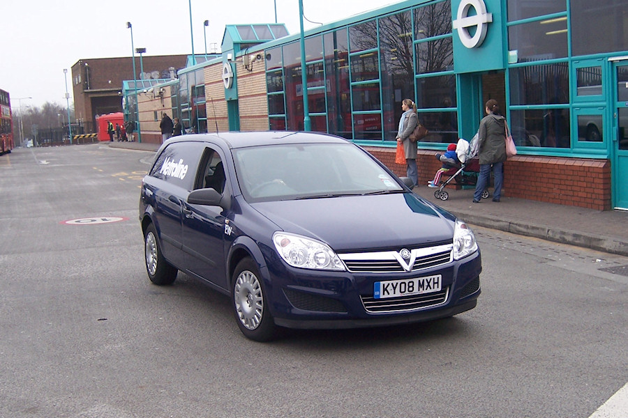 | Details: Identifying bus company service vehicles is not always easy. Metroline is one of a few companies that applies clear markings to its vans (although its minibuses and cars are usually anonymous). Vauxhall Astra van KY08MXH, photographed at Edgware Bus Station on 13th March 2012, even has an allocation code, showing that it is based at the garage here. | ||||