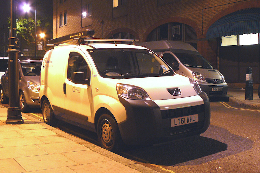 | Details: Since being delivered in November 2011, Tube Lines' ten Peugeot Bipper vans have joined the ranks of service vehicles that can only regularly be seen at night. On the 6th June 2012 7169P was found parked outside the old Euston Tube Station building on Drummond Street. Since delivery it has been fitted with roof-bars. | |||