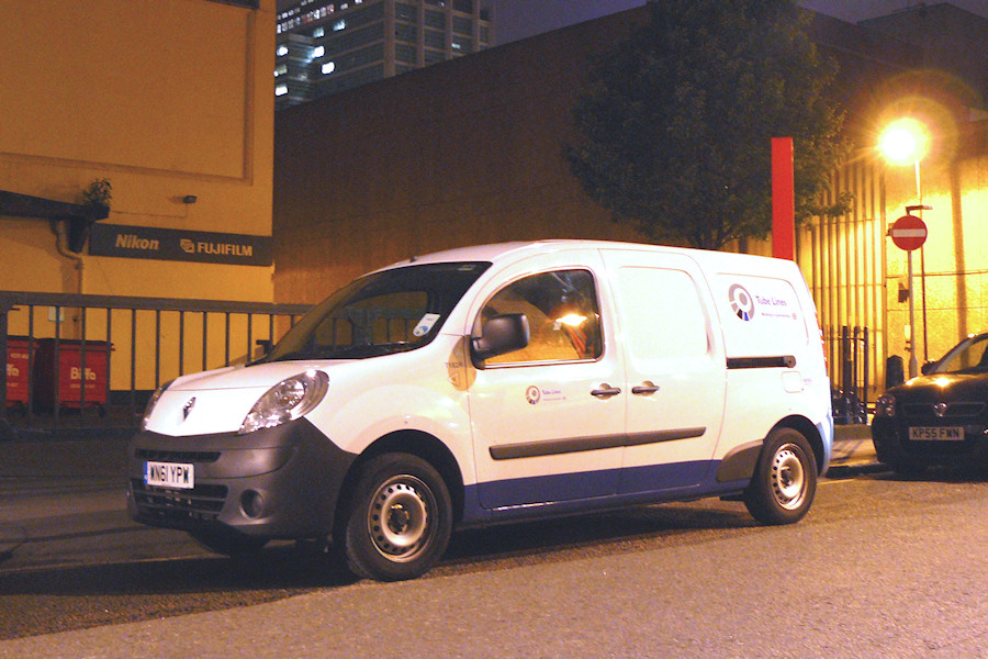 | Details: Also photographed on Drummond Street on 6th June 2012 was Renault Kangoo Maxi van 7182R. One of a batch of ten vans for Tube Lines' Lifts and Escalators division, they followed on numerically from their ten Peugeot Bippers. Predictably, they are also most active at night, although one or two can usually be seen parked at Frank Pick House (Acton). The building in the background is the Cobourg Street Control Room, originally built for the Victoria Line. The large gates (between the tree and the street-light) conceal a small parking area, although I have never seen anything inside. Of note is that this is the 4000th photograph to be published. | |||