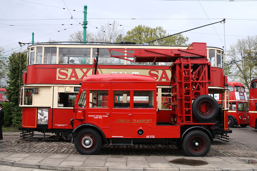 | Details: As well as a mini open day at Fulwell Garage, the 50th anniversary of the demise of London's last trolleybuses was marked by a multi-day event at the East Anglian Transport Museum in Carlton Colville. A large number of relevant vehicles was on display, including the LT Museum's AEC Mercury tower wagon 89Q. This side view taken on 8th May 2012 clearly shows the lettering and layout of the vehicle, and has a nice backdrop in the form of a preserved London tram. | |||