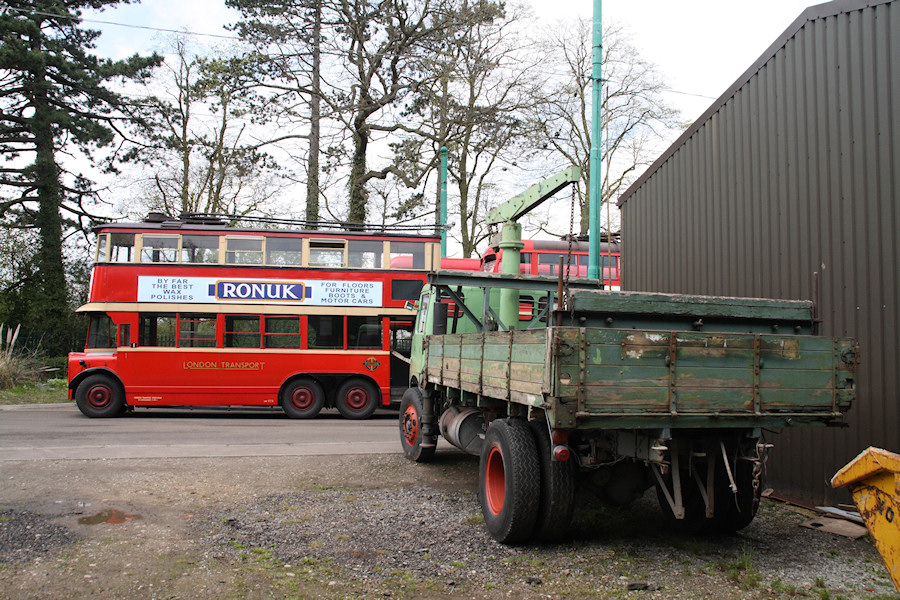 | Details: Also present at the Carlton Colville event in May 2012 was AEC Mercury pole carrier 1081Q, still undergoing restoration. This rear view shows the low bolster at the back of the body, and also the remains of what looks like a towing bar. In the background is 'Diddler' trolleybus number 1. | |||