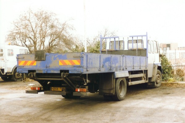 | Details: The final Ford Cargo lorries to join the service vehicle fleet were a pair of 1313 Dropside Lorries bought in late 1990. These were the only examples fitted with a crew-cab, and also the only ones never to carry grey livery, arriving in the new LUL white/blue. The two vehicles had differences. 2498F (H208FLM), seen here at Acton on 27th February 1991, had a fold-away tail-lift which allowed the fitting of gate-type doors to the rear of the bodywork. 2499F had a conventional tail-lift and also carried a winch. | ||||