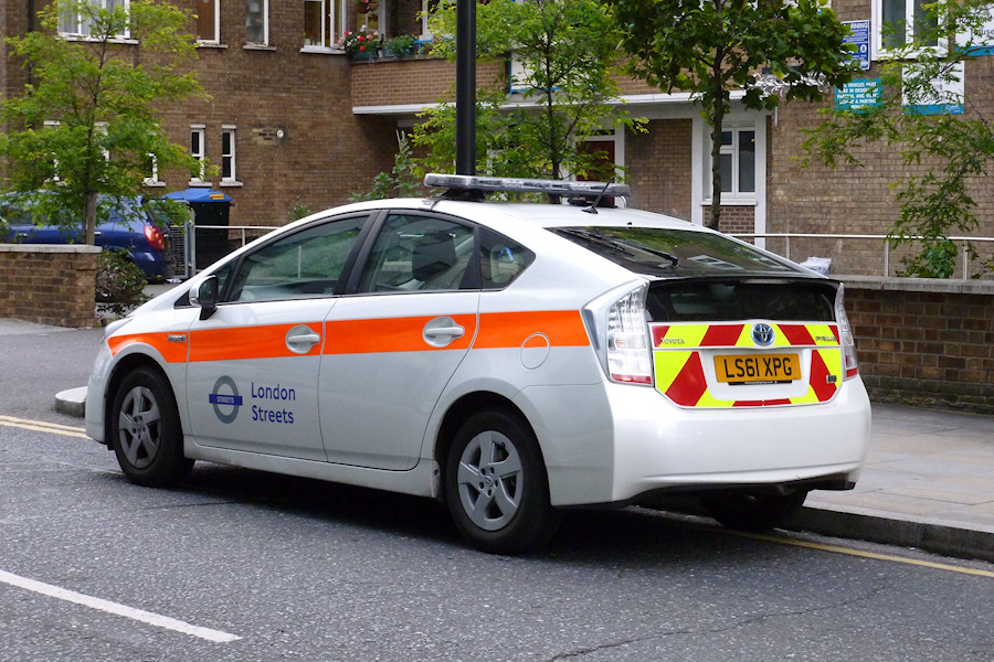 | Details: A much more straightforward TfL Streets Toyota Prius is LS61XPG, delivered (via Acton Works) in January 2012 and based most likely at Chancel Street in Southwark. It was photographed nearby, outside the Palestra building on 4th July 2012. | |||