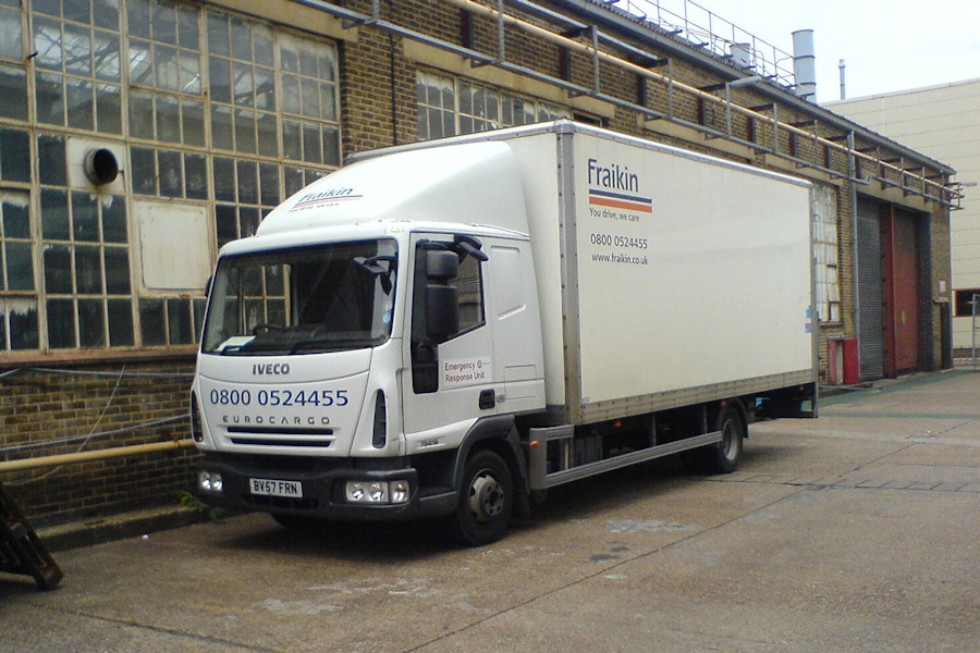 | Details: Photographed in Acton Works on 21st August 2012, BV57FRN was an Iveco Eurocargo box truck on hire from Fraikin. It had been given Emergency Response Unit labels on the cab doors and had perhaps been hired to provide additional cover during the Olympics and Paralympics Games period. | |||