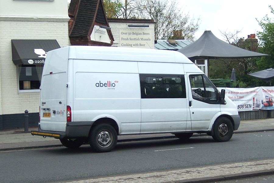 | Details: YS56JUY is one of several high-roof Ford Transit crew vans added to the Abellio fleet in the past year. It is slightly unusual for carrying Abellio Surrey fleetnames yet operating from the London-area garage at Fulwell, near which it was photographed on 8th May 2012. | |||