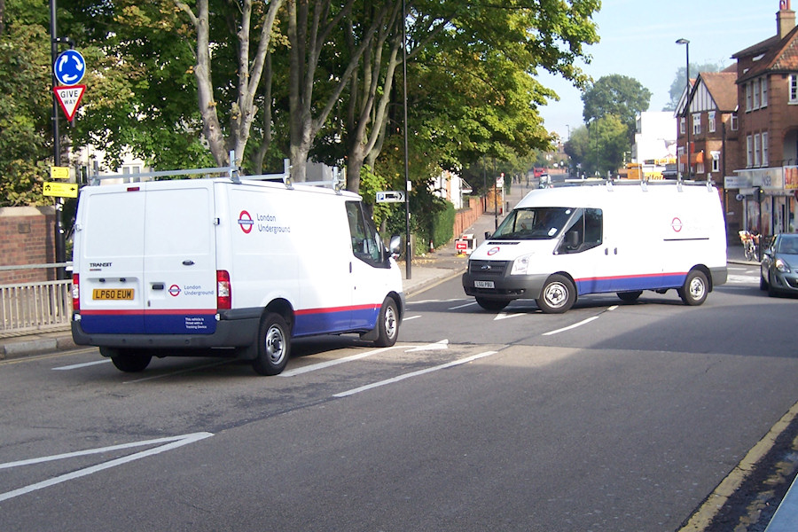 | Details: A lucky snap by Ray was this view of two Ford Transit vans entering Museum Way outside Acton Town Station on 9th October 2012. Both vehicles are based at Hearne House, behind the Museum Depot. Nearest the camera is short wheelbase 7019F, new in February 2011 but very rarely reported. The other van is long wheelbase 7272F, one of four believed to be used by the Depot Engineering Support Unit. | ||||