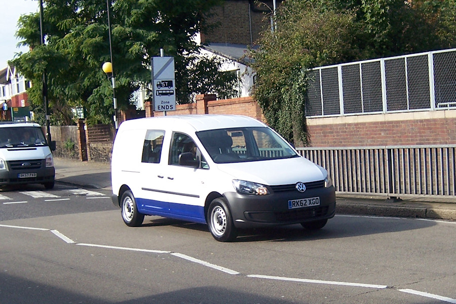 | Details: Ray seems to have a knack for catching vehicles on delivery to Acton Works. Arriving from mid-October 2012 was a sizable batch of Volkswagen Caddy Maxi crew vans, including RK62XGO photographed passing Acton Town Station on 9th October 2012. The extra length compared to a standard Caddy is apparent if you compare this with the previous photo, while the offside cargo door is usually only fitted on the Maxi model. RK62XGO was later given fleetnumber 7545VW and assigned to Tube Lines at Stratford Market. It seems likely that this batch will replace similar 6882VW to 6887VW, which probably means they will be equally elusive in service. | |||