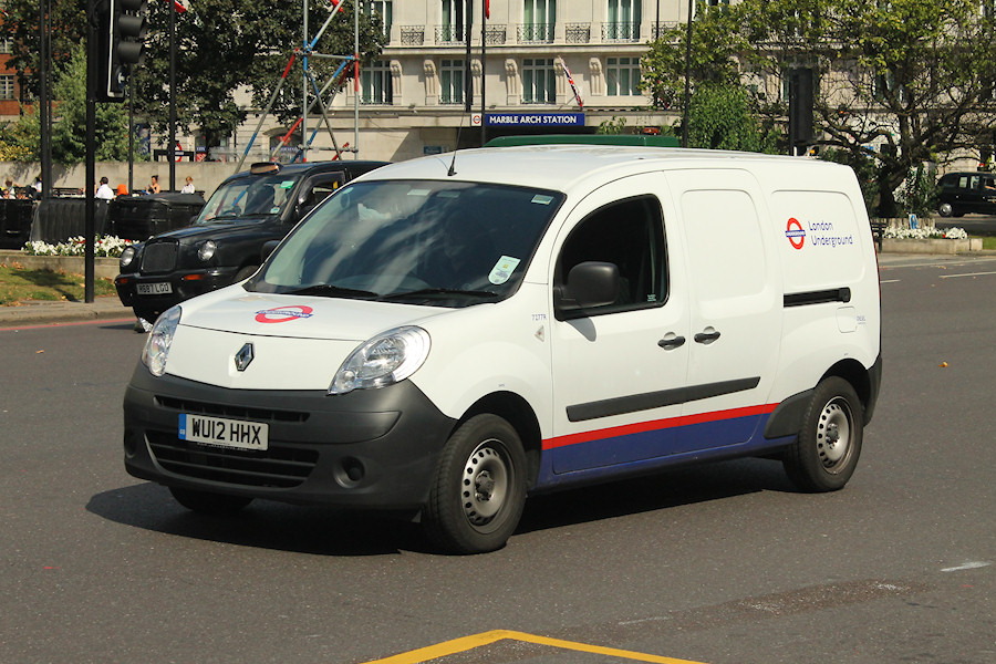 | Details: 7276R and 7277R were a pair of Renault Kangoo Maxi vans delivered to LUL in March 2012. These were the last of several to have been registered in the west of England, later deliveries having London registrations. Both were allocated to Griffith House and hence are most active at night. 7277R was caught during the day, rounding Marble Arch on 28th August 2012. | |||