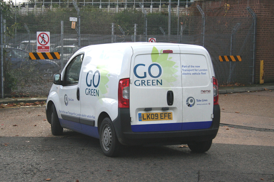 | Details: Another view of Citroen Nemo electric van LK09EFE, arriving at Acton Works on 22nd November 2012. The livery and lettering applications suggests this is now part of the regular fleet rather than a hire or demonstrator. However it was not included in an official fleetlist received in October 2012. | ||||