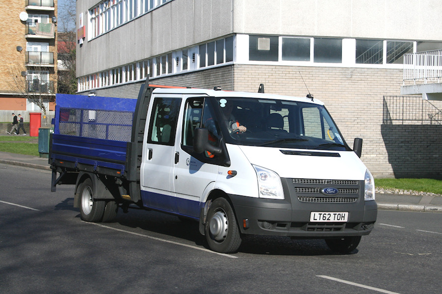 | Details: Fleetnumbers 7382 to 7418 were all assigned to Tube Lines, but the batch included just one Ford Transit dropside truck. 7401F is the normal LWB ECF (extended chassis frame) version fitted with a crew-cab and tail-lift. It is allocated to Stratford Market Depot but was photographed coming down Bollo Lane towards Acton Works on 19th February 2013. | |||