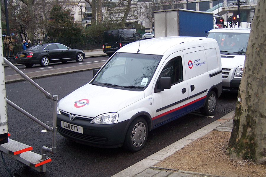 | Details: Found parked on Victoria Embankment on 9th March 2013 during work at the nearby station, 7097V is a Vauxhall Combo van from the Pelham Street allocation. New in July 2011, this was one of the last Combo vans leased for the central fleet (for now). The steps in front are attached to demountable body DB8, used as a site office. | |||