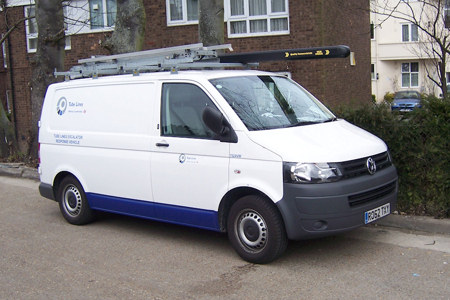 | Details: 7524VW and 7525VW are a pair of Volkswagen Transporter vans used by Tube Lines from their Frank Pick House base in Acton. Rather unusually, both have additional lettering for their role as Escalator Response Vehicles. 7524VW was photographed parked on Museum Way at Acton Town Station on 6th March 2013. | ||||