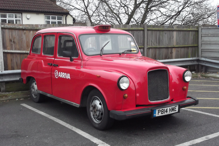 | Details: Arriva started repainting its support vehicles at Grays to red livery following the completion of a similar program at Dartford garage. Carbodies FX4 taxi P814HME is allocated fleetnumber CF35 and was initially used in a rather worn-looking black livery with the Arriva name across the bonnet. The repaint included silver wheels and the taxi still looked smart when it was photographed at Romford on 4th April 2013. | |||