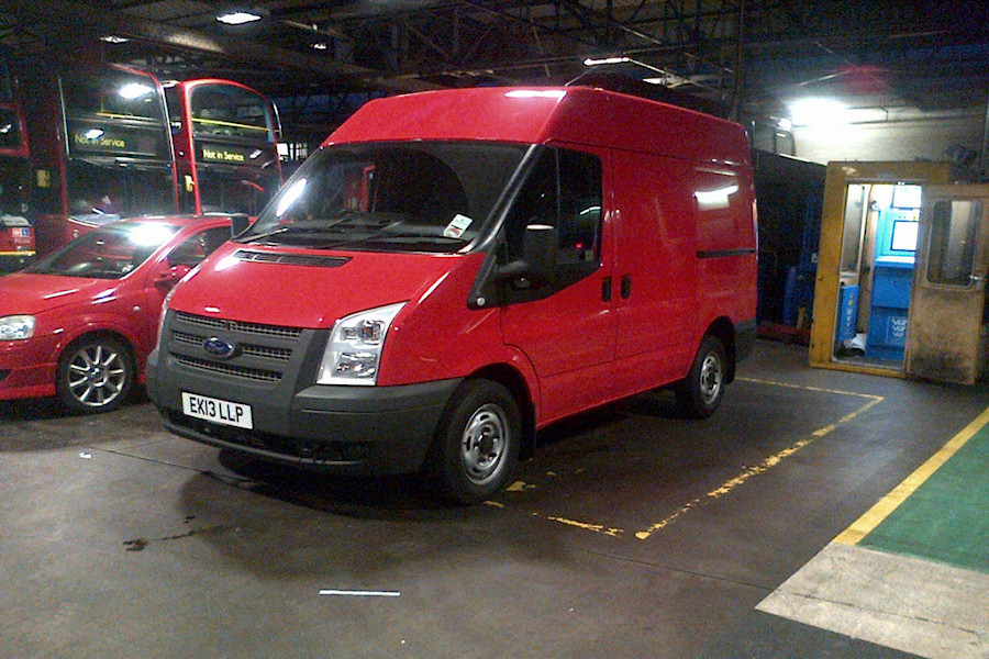 | Details: Photographed just after delivery to Go-Ahead London's New Cross Garage on 9th May 2013, EK13LLP is a new Ford Transit engineers van. Destined to replace similar EF05YJD, it had yet to have lettering applied. Both vans were to short-wheelbase, mid-height configuration. | ||||
