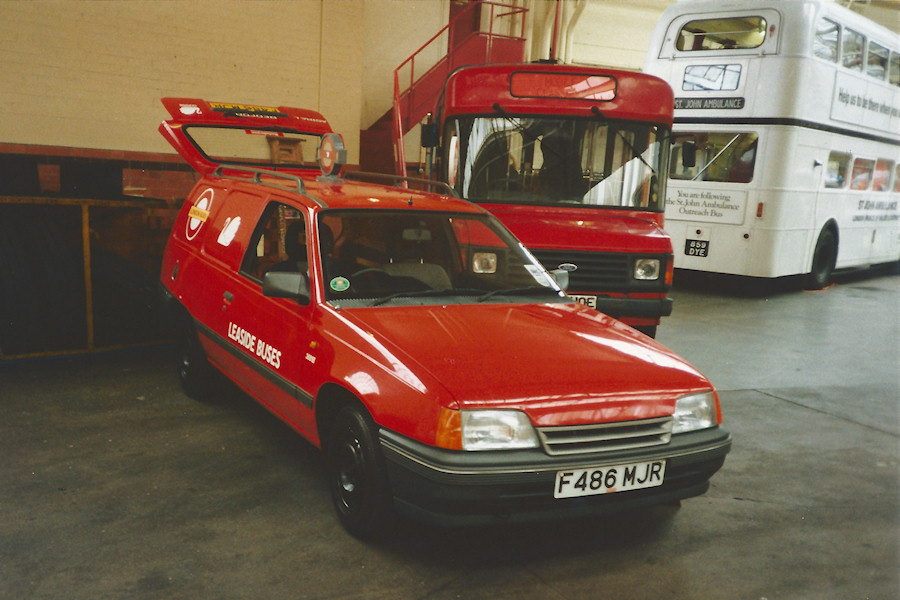 | Details: Another open day, another Astra inspector's van, this time 3681B at Wood Green on 23rd June 1990. These vehicles comprised the eleventh and final generation to carry the roof roundels (apart from a handful of later deliveries such as 4010B). General Motors was in the process of phasing out the Bedford name latterly used on light commercial products such as the Astra van. This batch of vans had no frontal badging but this photograph shows that the Bedford name is still carried on the rear door. In the background can be seen Ford Transit minibus FS28, then in use as a mobile classroom (which I suppose means it should be added to the database) and former RM1859, owned by the St John Ambulance but destined to return to service with Reading Mainline in 1994. | ||||