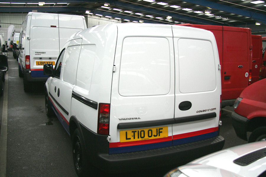 | Details: Vauxhall Combo van 6873V spent its working life in 'Metroland', being based variously at Pinner, Ruislip and Rickmansworth. It went off lease in autumn 2013 and soon turned up at British Car Auctions (BCA) in Blackbushe, where it was photographed on 3rd October. The Transit van in front is 6920F, latterly based at Acton Works, while further in front can be seen 6907F from the same batch. | ||||